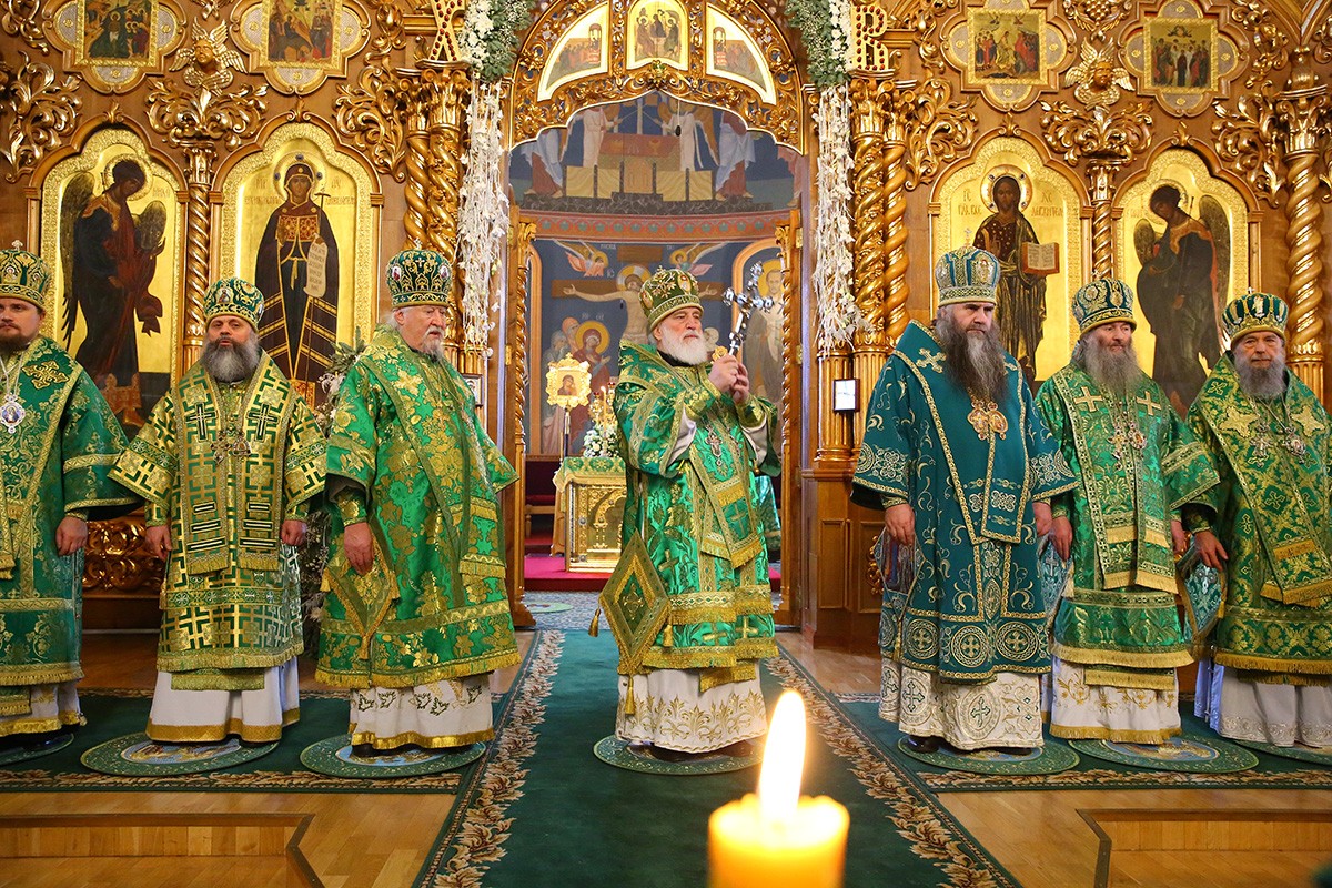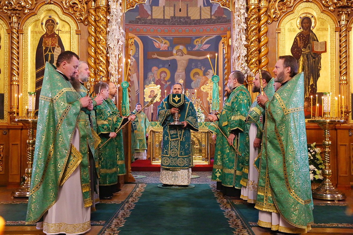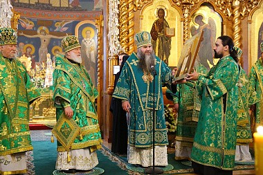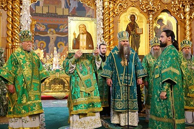 Богослужение в Троицком соборе обители, где пребывают мощи святого, возглавил Патриарший экзарх всея Беларуси митрополит Минский и Заславский Павел.