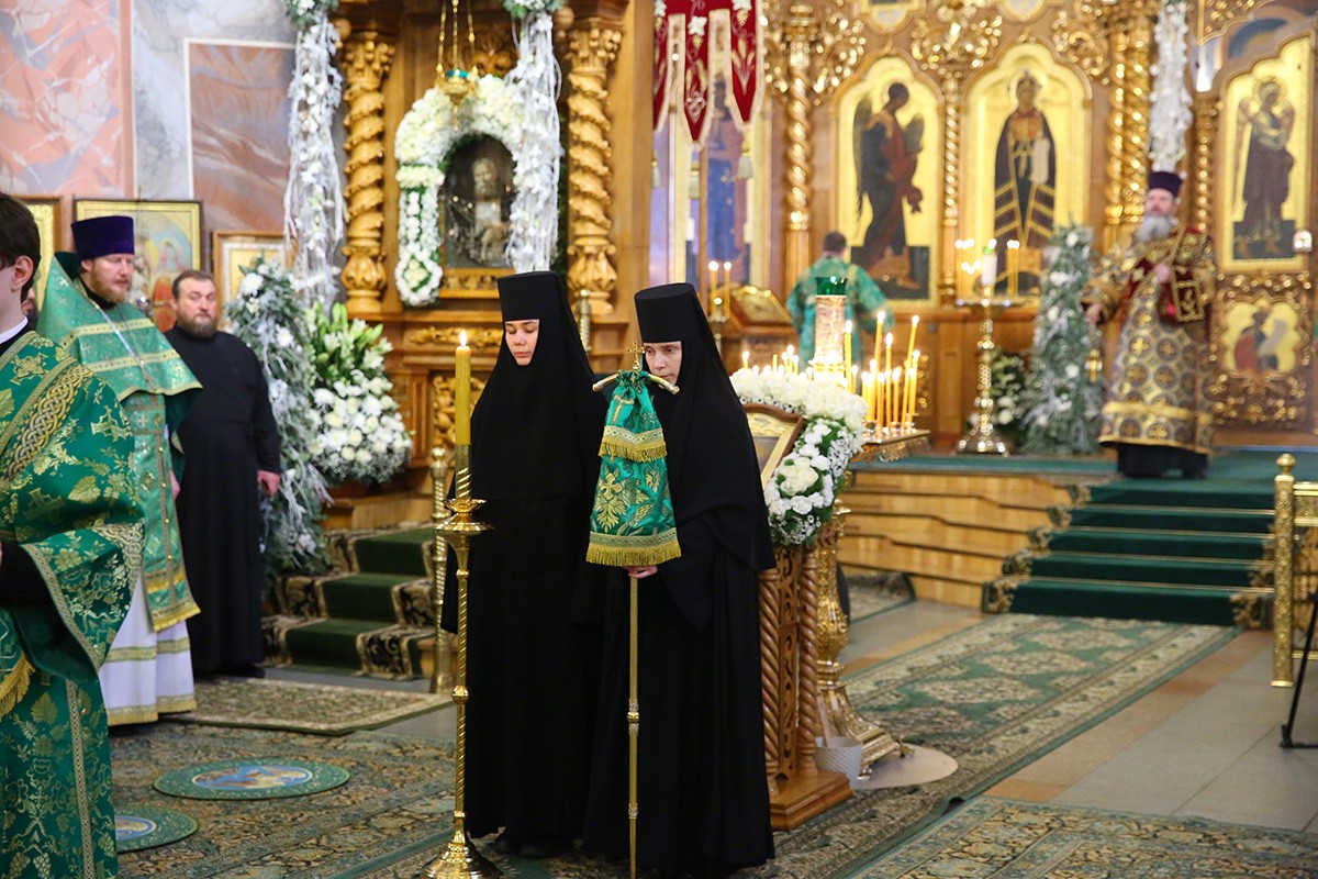 В храме вместе с многочисленными паломниками и прихожанами молились: настоятельница Свято-Троицкого Серафимо-Дивеевского монастыря игумения Сергия (Конкова) с сестрами; настоятельница Макарьевского Свято-Троицкого Желтоводского монастыря игумения Михаила (Орлова); настоятельница Выксунского Иверского монастыря игумения Антония (Миронова); настоятельница Николаевского Георгиевского Абабковского монастыря игумения Никона (Желякова); настоятельница Нижегородского Крестовоздвиженского монастыря игумения Филарета (Гажу); настоятельница Арзамасского Свято-Николаевского монастыря игумения Филарета (Шевченко); настоятельница Покровского монастыря в с. Лукине Богородского района игумения Гавриила (Суханова); настоятельница архиерейского подворья Арзамасского Новодевичьего Алексия, человека Божия, монастыря монахиня Феогноста (Гончарова); настоятельница архиерейского подворья Мало-Пицкого монастыря во имя иконы Божией Матери «Всех скорбящих Радость» инокиня Филарета (Андрейко); настоятельница Ковыляйского Свято-Троицкого монастыря (Республика Мордовия) игумения Магдалина (Арбузова).