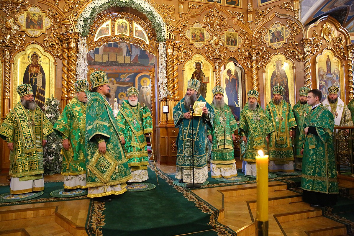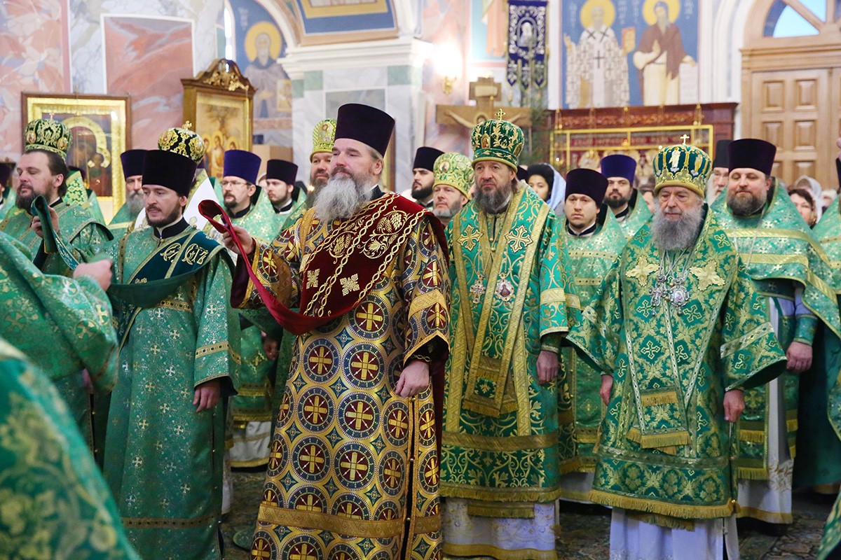 Главе Белорусской Православной Церкви сослужили митрополит Нижегородский и Арзамасский Георгий, митрополит Чебоксарский и Чувашский Варнава, митрополит Йошкар-Олинский и Марийский Иоанн, митрополит Иваново-Вознесенский и Вичугский Иосиф, митрополит Саранский и Мордовский Зиновий, архиепископ Роменский и Бурынский Иосиф, епископ Краснослободский и Темниковский Климент, епископ Балахнинский Илия, епископ Ардатовский и Атяшевский Вениамин, епископ Канашский и Янтиковский Стефан, викарий Нижегородской епархии епископ Дальнеконстантиновский Филарет, епископ Выксунский и Павловский Варнава, епископ Альметьевский и Бугульминский Мефодий, епископ Лысковский и Лукояновский Силуан, секретарь Нижегородского епархиального управления протоиерей Сергий Матвеев, настоятели мужских монастырей, благочинные округов, руководители отделов Нижегородской епархии и другие клирики епархий Русской Православной Церкви.