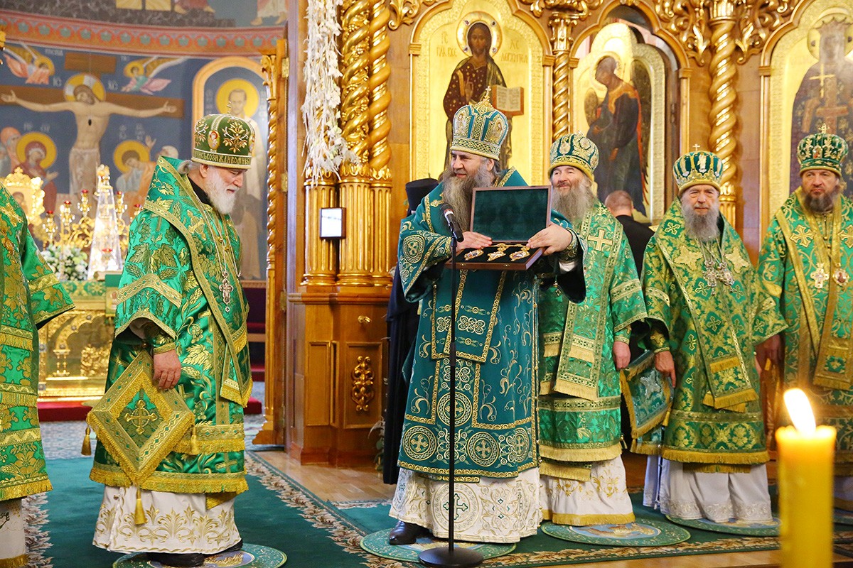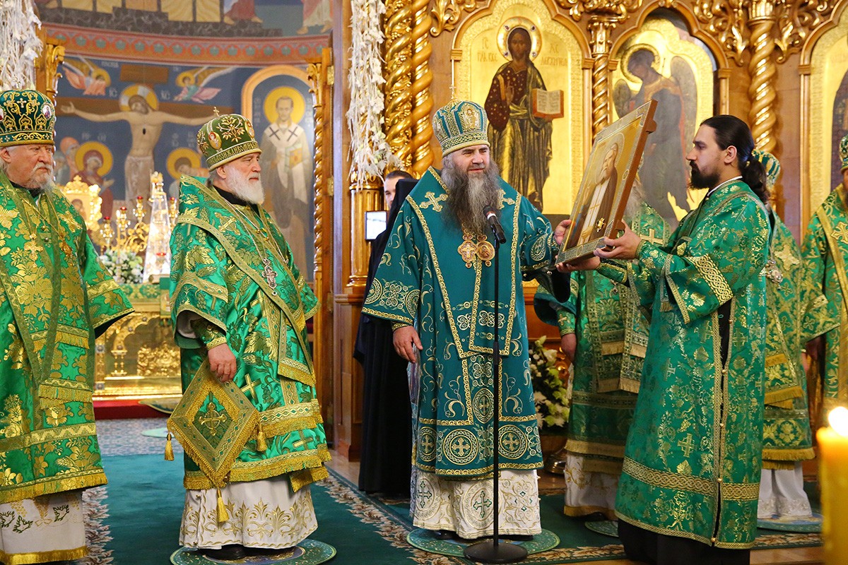 По окончании Литургии настоятельница Дивеевской обители поблагодарила митрополитов Павла, Георгия и других архипастырей и пастырей за совершенное богослужение. «Пусть Господь молитвами Царицы Небесной – нашей верховной Игумении – и преподобного Серафима укрепляет вас в несении трудов на благо Церкви Христовой и нашего Отечества», – пожелала игумения Сергия и преподнесла митрополитам Павлу и Георгию заздравные просфоры.