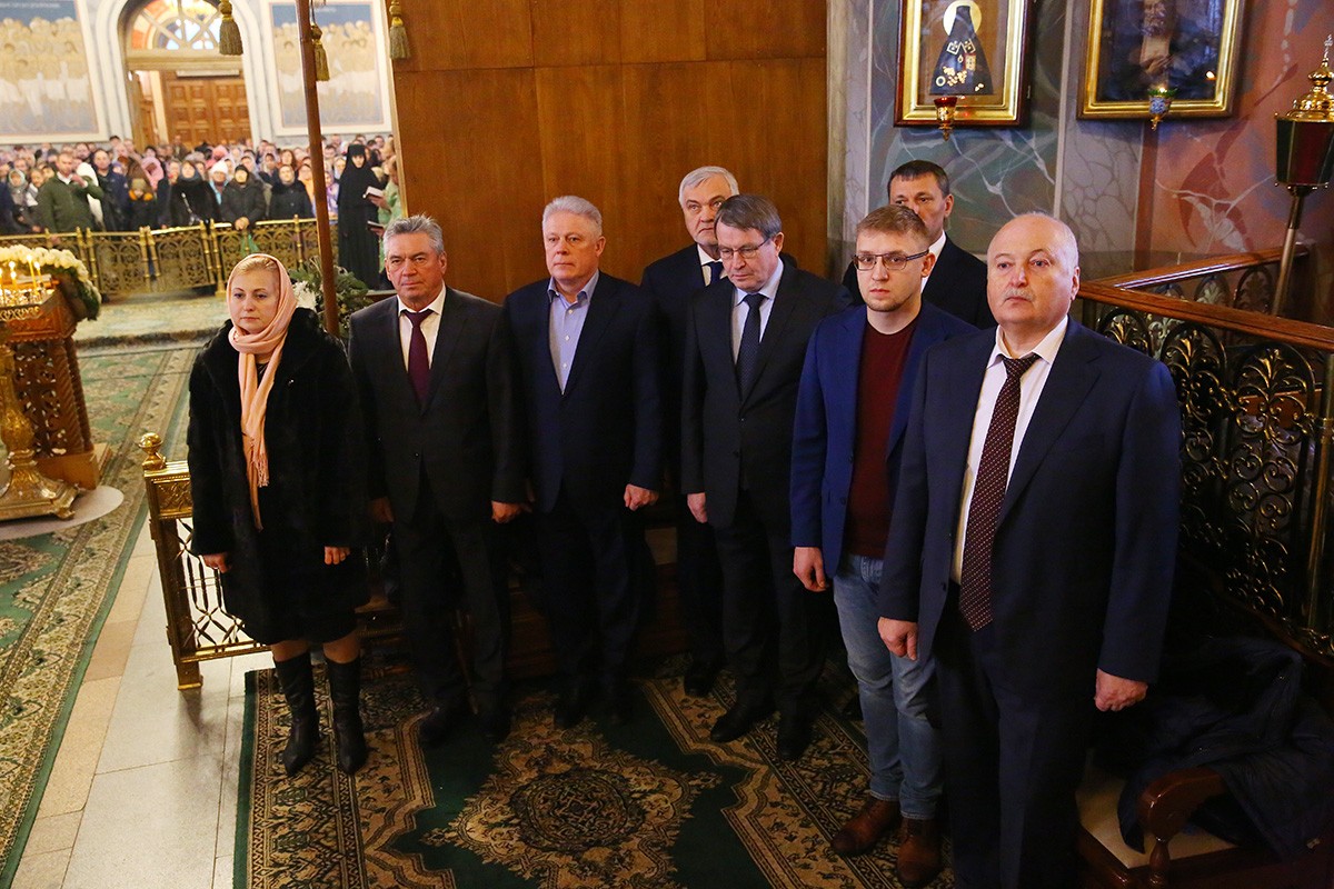 За богослужением присутствовали заместитель полномочного представителя Президента РФ в Приволжском федеральном округе Игорь Паньшин, директор Российского федерального ядерного центра – Всероссийского научно-исследовательского института экспериментальной физики (РФЯЦ-ВНИИЭФ) Валентин Костюков, руководитель Федерального медико-биологического агентства России Владимир Уйба.