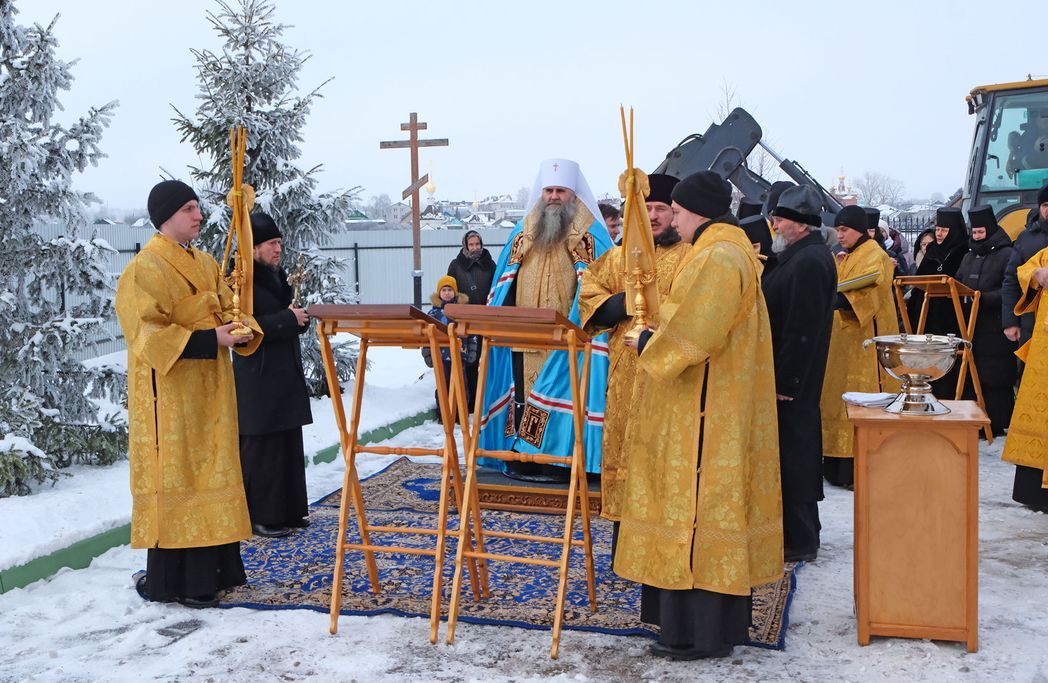 По окончании поздней Божественной литургии, которая совершалась в Троицком соборе архиерейским служением, митрополит Нижегородский и Арзамасский Георгий совершил молебен на начало доброго дела и окропил святой водой место будущего строительства.
