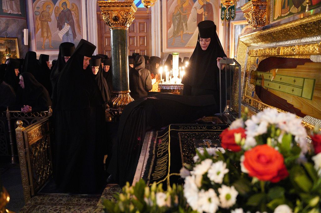 Далее сестры по старшинству стали подходить к мощам преподобного Серафима, а затем со словами прощения – к священнослужителям, матушке игумении, земно кланялись и друг другу. В знак прощения отвечали: «Бог простит», прощая человека не формально, на словах, а искренне, от всего сердца.⠀