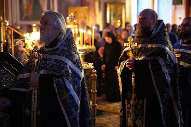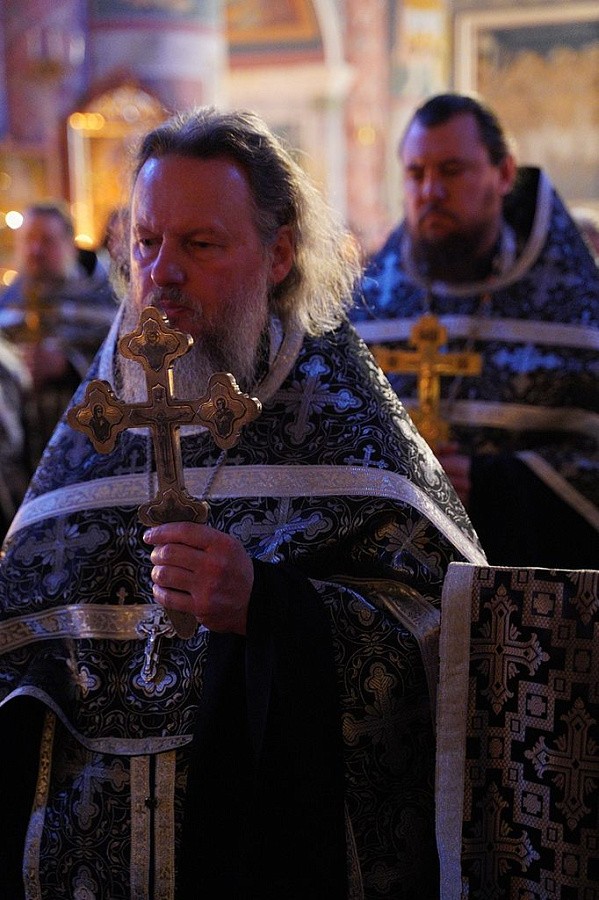Затем духовенство вышло с поклоном к мощам преподобного Серафима Саровского, после чего все священнослужители в порядке старшинства испросили друг у друга прощения.