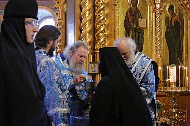 Сам праздничный день был отмечен в Дивеевской обители тремя Божественными литургиями, общим причащением сестер и чином о Панагии.