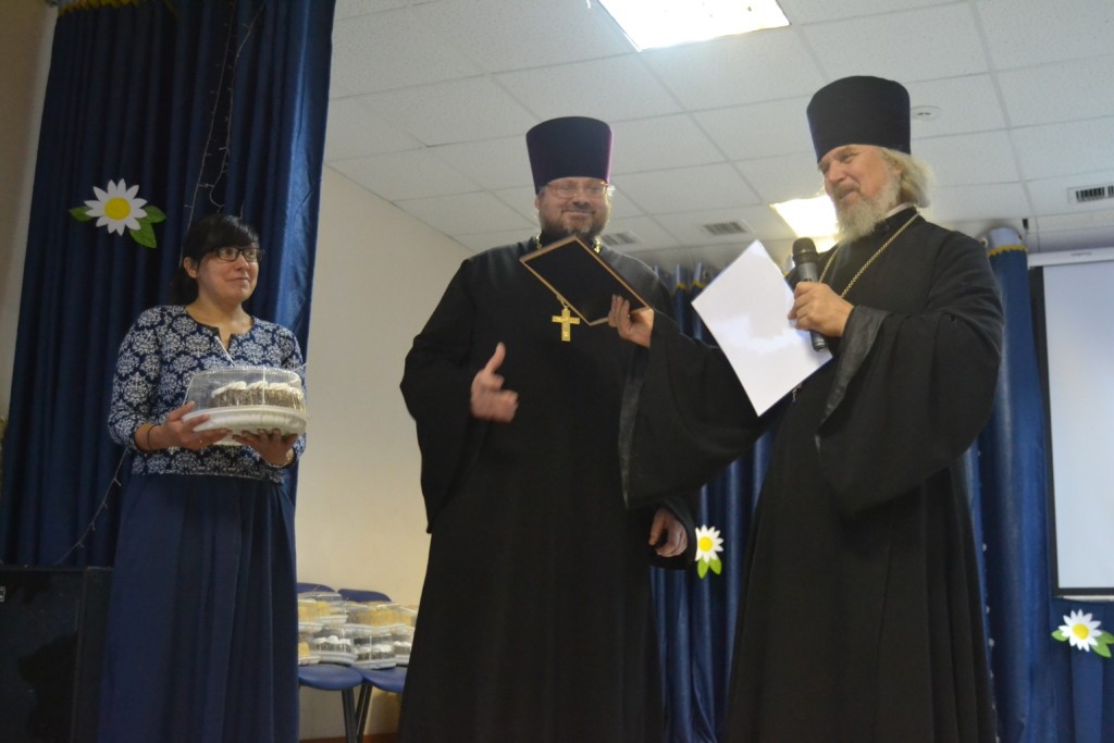 По благословиению епископа Нижнетагильского и Невьянского Евгения 16-ти многодетным семьям священнослужителей, в которых воспитываются 42 ребенка, были вручены подарки: сертификаты на приобретение канцелярских принадлежностей и торты. Самой многодетной семье епархии иерея Константина и матушки Надежды Столовых, у которых 10 детей, также вручили сертификат на электрогазовую плиту, важную бытовую вещь в такой многодетной семье.