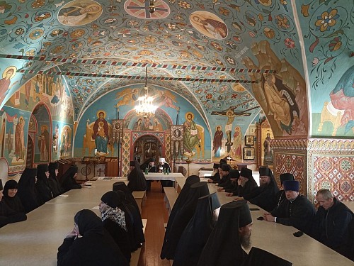 Встреча монашествующих началась с Божественной литургии в Троицком соборе монастыря, которую возглавил митрополит Смоленский и Дорогобужский Исидор. Его Высокопреосвященству сослужили епископ Рославльский и Десногорский Мелетий, собор духовенства Смоленской, Вяземской и Рославльской епархиях.