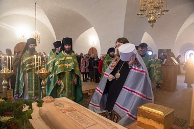 Мощи почитаемого вологодского святого были установлены на приготовленное у раки место.