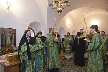 Затем митрополит Игнатий вместе с Преосвященными епископами в сослужении священников Вологодской митрополии возглавил первую за многовековую историю монастыря Божественную литургию, соборно совершаемую архиереями.