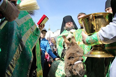 По окончании богослужения был совершен крестный ход с «шествием на осляти»