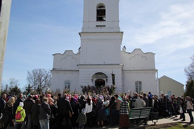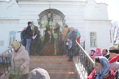 Накануне вечером состоялось всенощное бдение, во время которого были освящены вайи – распустившиеся ветви деревьев, вербы, которые являются знаками победы Господа и Спаса нашего Иисуса Христа над смертью.