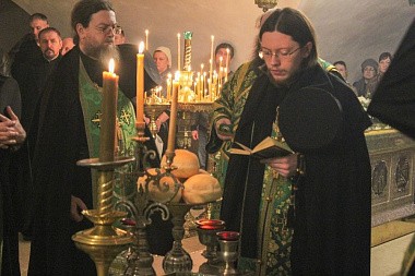 По окончании богослужения было совершено славление перед ракой с мощами преподобного Димитрия Прилуцкого.