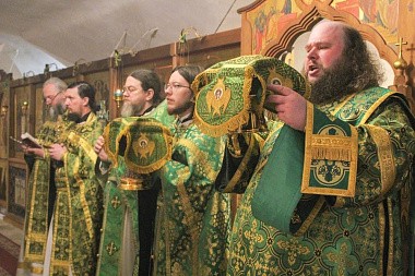 Церковные песнопения исполнил мужской хор под руководством студента семинарии чтеца Артемия Коровина.