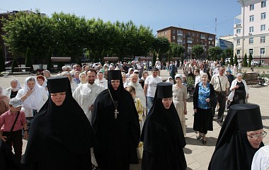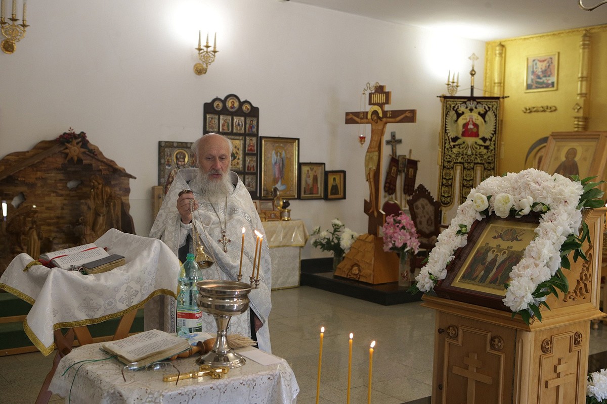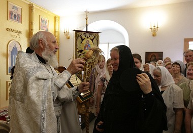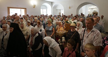 По окончании Литургии молящиеся прошли вокруг обители крестным ходом, во время которого был отслужен молебен.