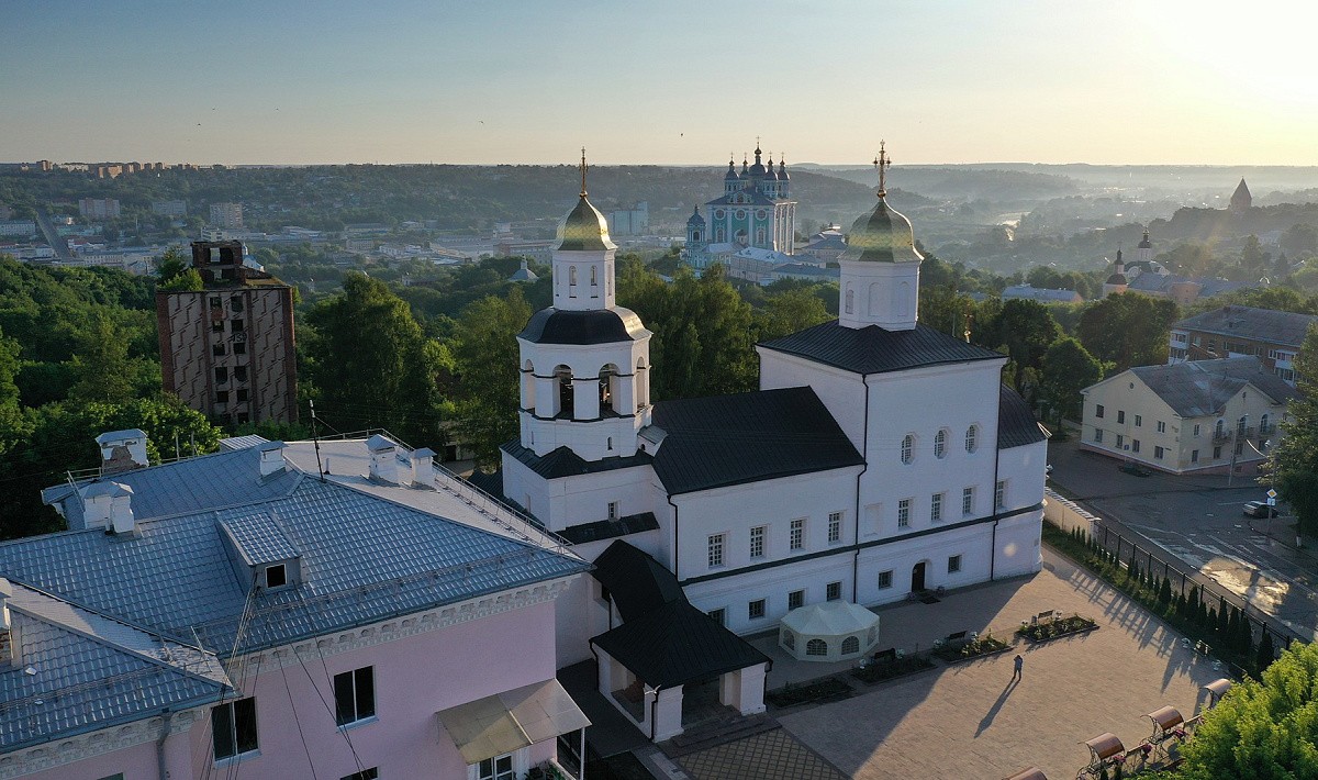 В связи с реставрацией главного собора монастыря в честь Вознесения Господня богослужение проходило в нижнем храме в честь прп. Сергия Радонежского, где собралось множество верующих г. Смоленска.