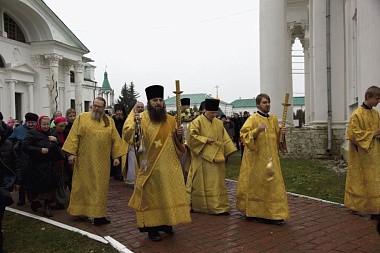 По окончании Литургии прошел традиционный крестный ход вокруг Дмитровского собора монастыря.