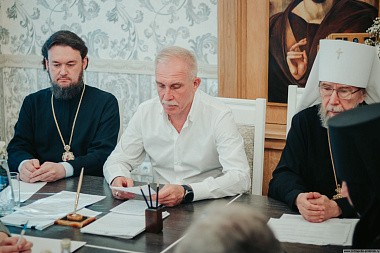 В совещании приняли участие глава Симбирской митрополии митрополит Симбирский и Новоспасский Анастасий, епископ Мелекесский и Чердаклинский Диодор, губернатор Ульяновской области Сергей Морозов, ктитор Спасской обители Игорь Любченков, духовенство и монашествующие Симбирской епархии, представители общественности.