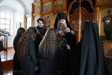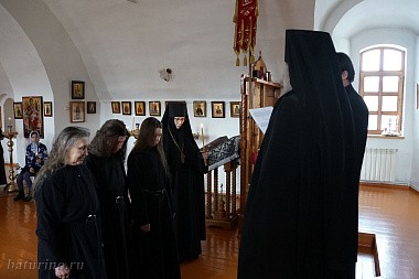 Священник пожелал, чтобы каждая из сестер очистила свое сердце и смогла стяжать внутреннюю сильную молитву, чтобы отражать нападки врага. «Ведь сатана хочет обезоружить нас, вывести из монастыря, заманить в мир. Если инокиня будет слушаться игумению, открывать ей свои помыслы, тогда нестрашно, вражьи козни будут разрушены! Важно, чтобы новоиспеченные инокини, действительно, были мудрыми девами, которые пришли к жениху Христу, чтобы они стали истинными невестами Христовыми», – заключил священник.