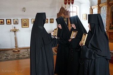 Настоятельница монастыря игумения Ника (Толмачева) также поздравила сестер и подарила им иконы Пресвятой Богородицы «Достойно есть». Матушка пожелала, чтобы они шли по пути царскому, Богородичному. «Ведь первая по нему прошла Сама Царица Небесная! Путь этот тернист, он очень непростой, но невероятно радостный, ведь результат его – спасение, Царство Небесное. Нужно трудиться над собой, над своим сердцем, очищая его, стараясь помогать сестрам. Нужно всегда помнить о том, что Господь живет только в чистом сердце».