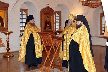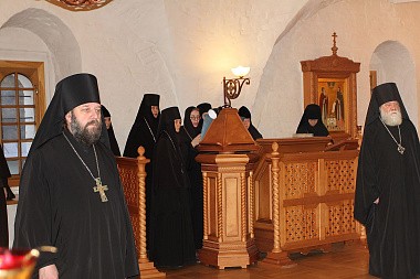 Перед началом заседания во Введенском храме обители был соборно отслужен молебен небесному покровителю монастыря святителю Иову, Патриарху Московскому.