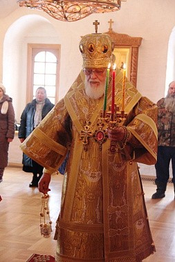 За Литургией Высокопреосвященнейшему владыке сослужили наместник монастыря игумен Димитрий (Севостьянов) с братией обители в священном сане.