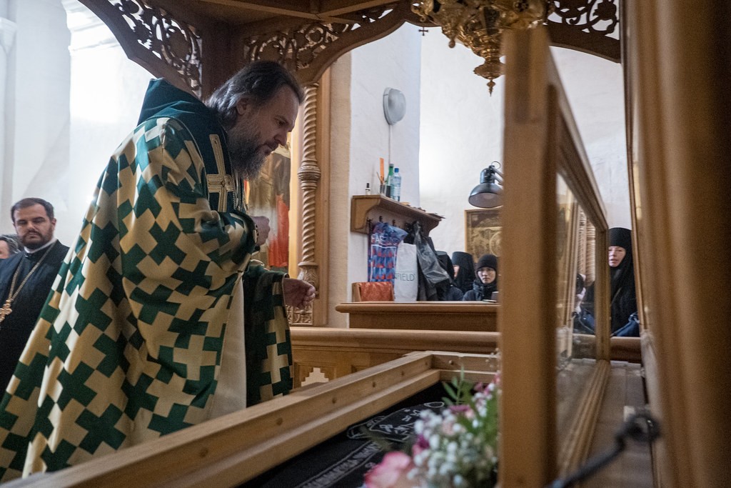 По заамвонной молитве было пропето величание и вознесена молитва святой заступнице города у раки с мощами преподобной Пелагеи.
