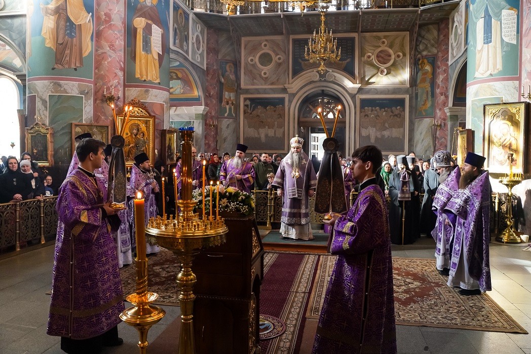 Управляющий епархией поблагодарил матушку игумению за добрые слова и обратился к собравшимся с архипастырским словом: «Блаженный Августин сказал: "Ты, Господи, создал нас со стремлением к Тебе, и беспокойно наше сердце, доколе не успокоится в Тебе". Человек отличается от всего творения тем, что в нем есть образ Божий. Если во всем животном мире есть только две потребности – пропитание и размножение, то человек имеет запросы в духовной жизни. Мы должны научиться сотворить в своем сердце внутреннюю келью, в душе своей уйти в затвор, отсечь многие зрелищные дела, погрузиться в молитву, богомыслие, рассуждения о своем грехе и плач о своей жизни. Господь сказал: "Сыне, даждь Мне свое сердце! Где сердце ваше, там и сокровище ваше!" У людей изнутри исходят и злые, и добрые дела. Великий пост является для нас особым временем, чтобы наши духовные очи прозрели, чтобы наш духовный слух отворился и мы в своем сердце услышали Бога. Святитель Иоанн Златоуст говорил: "Совесть – это голос Божий в сердце человека". Слушаем свое сердце, и все управится и благоустроится».