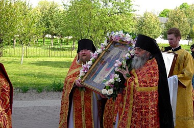 По окончании Литургии вокруг Успенского собора по территории обители был совершен праздничный крестный ход со Свенской иконой Божией Матери – точным списком чудотворного образа, хранящегося в Государственной Третьяковской галерее в Москве.