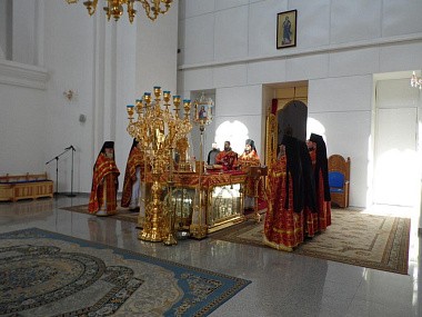 В этот день по благословению митрополита Брянского и Севского Александра Божественную литургию возглавил наместник обители игумен Алексий (Тюрин).