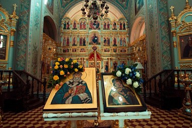 Накануне в соборе в честь Иконы Божией Матери «Всех скорбящих Радость», где ныне временно почивают мощи Казанского святителя, братией обители было совершено всенощное бдение, а в самый день праздника – соборная Божественная литургия.