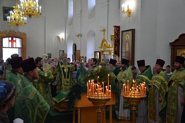 За богослужением молились настоятельница обители игумения Матрона (Брыксина) с сестрами, настоятельница Иоанно-Казанского монастыря с. Сезенова, руководитель Отдела по монастырям и монашеству Елецкой епархии игумения Феофания (Проценко), настоятельница Свято-Троицкого женского монастыря г. Лебедяни игумения Гликерия (Соболева) и настоятельница Елецкого Знаменского монастыря г. Ельца игумения Антония (Поликарова), а также многочисленные паломники, прибывшие в обитель к празднику.
