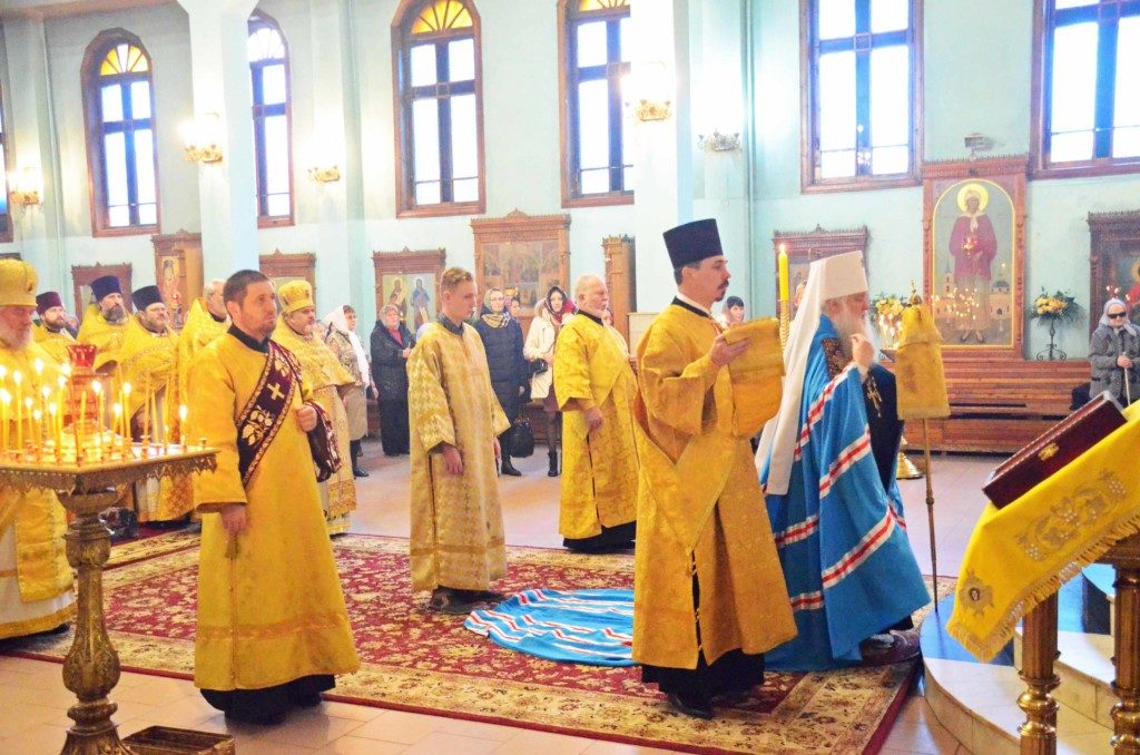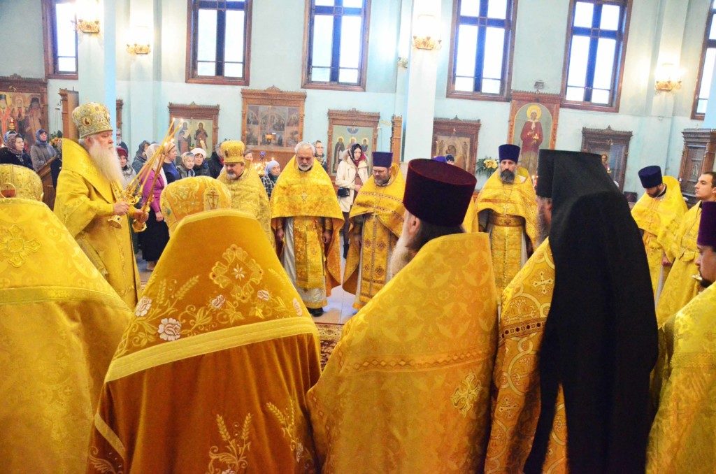 Его Высокопреосвященству сослужили епископ Урюпинский и Новоаннинский Елисей, епископ Калачевский и Палласовский Иоанн, благочинные епархиальных округов, руководители епархиальных отделов в священном сане, клирики митрополии.