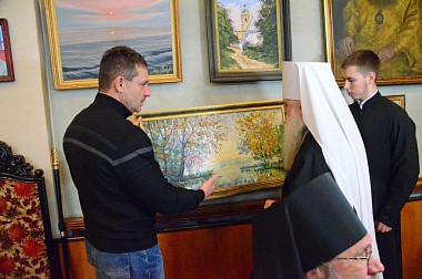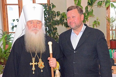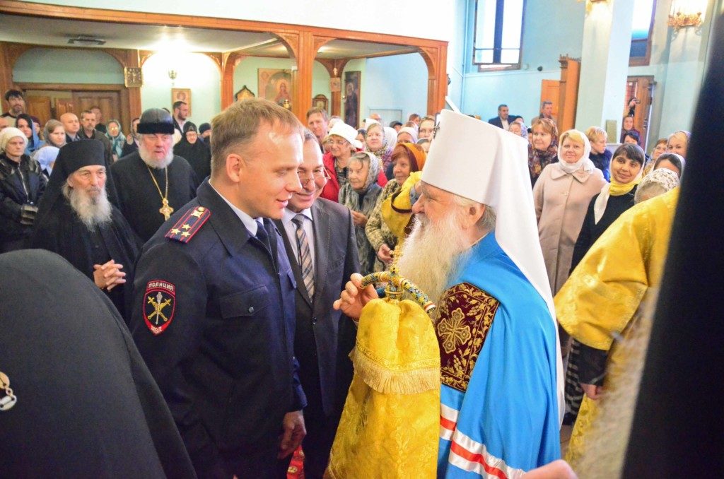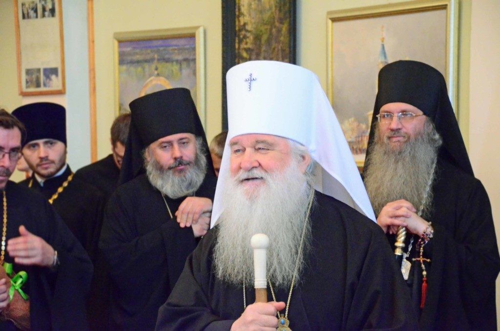 По окончании богослужения в актовом зале Свято-Духова монастыря митрополит Герман принимал поздравления.