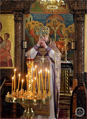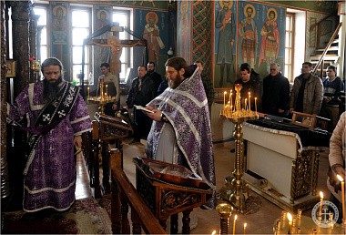 Отцу наместнику сослужил благочинный Фиолентовского монастыря иеромонах Арсений (Чечота).