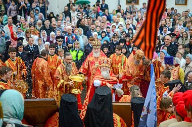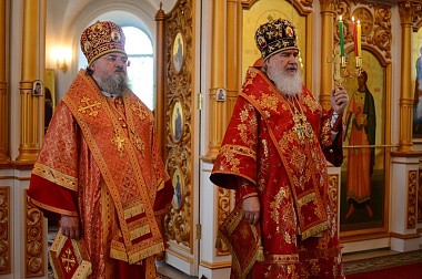Церковные песнопения исполнил хор под управлением регента Евгения Пуцанкова.