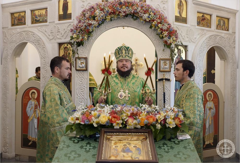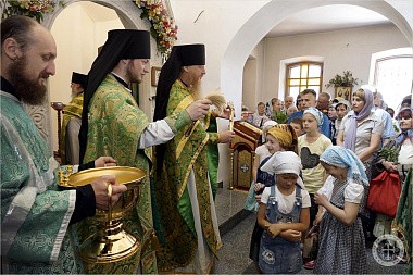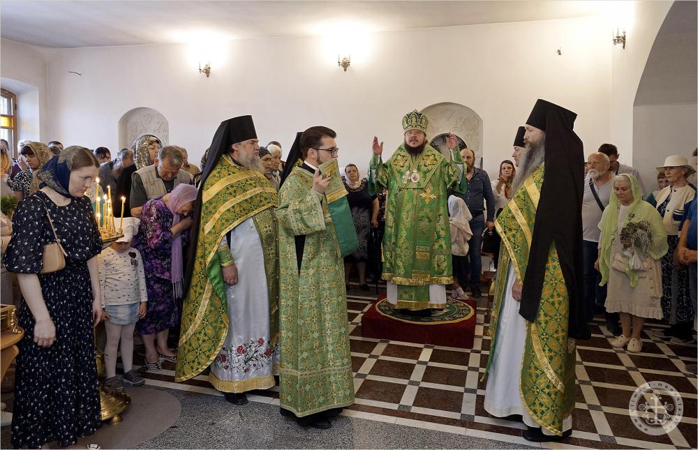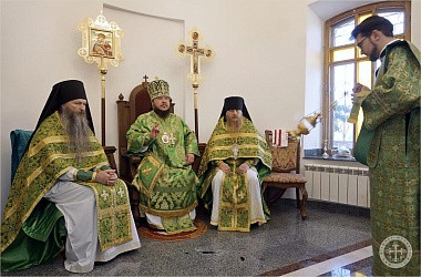 Его Преосвященству сослужили насельники монастыря в священном сане с благочинным обители иеромонахом Авелем (Василенко).