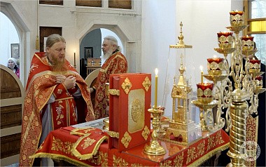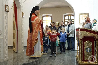 По окончании Литургии отец благочинный обратился к собравшимся со словом о святых просветителях славян Кирилле и Мефодии и поздравил тезоименитого в сей день Святейшего Патриарха Московского и всея Руси Кирилла.