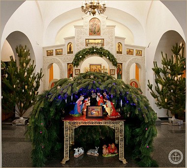 Украшенный к рождественским торжествам храм был полон прихожан и паломников.