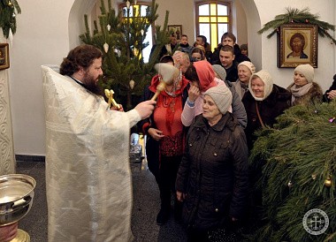 По окончании богослужения после целования креста отец наместник от лица инкерманской братии вручил всем маленьким прихожанам рождественские подарки.