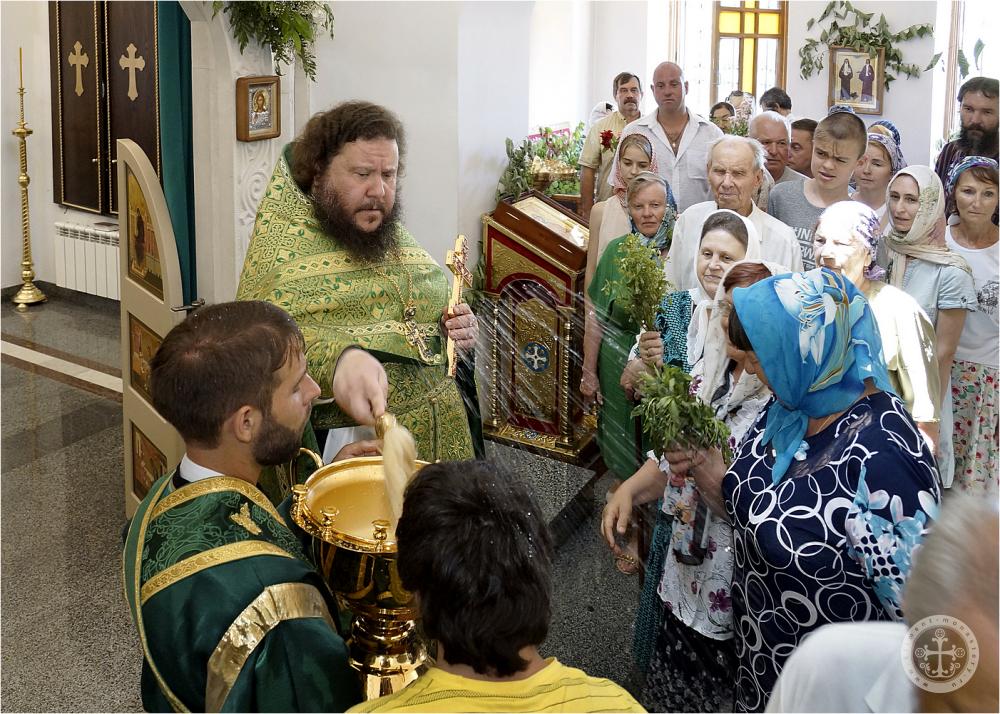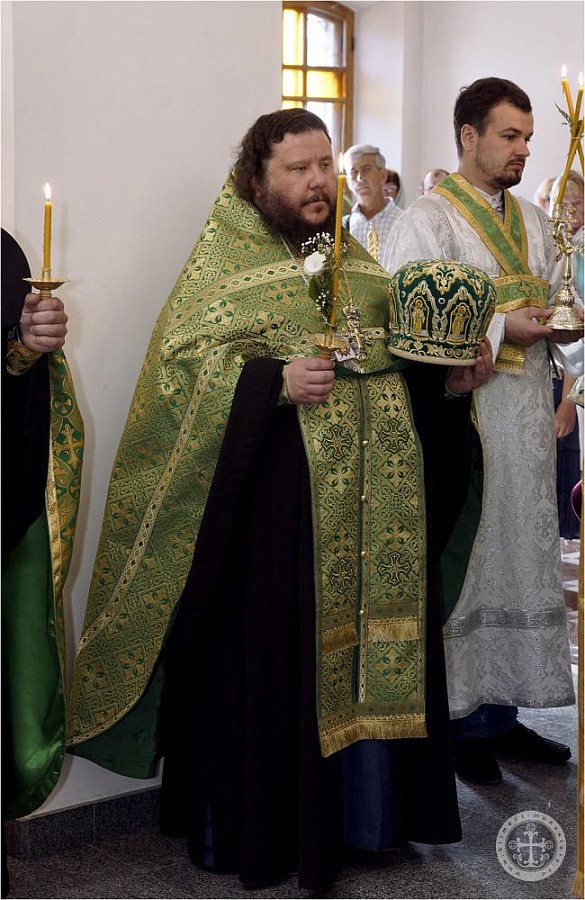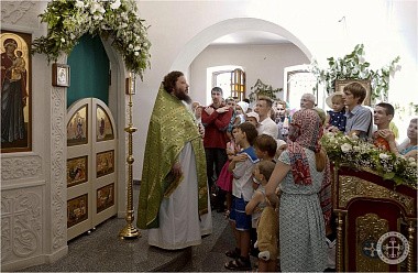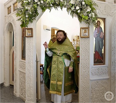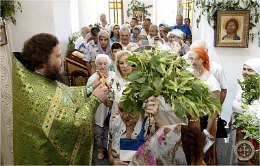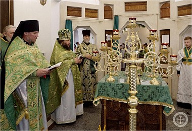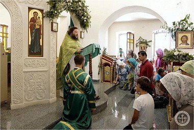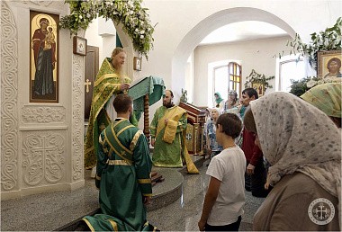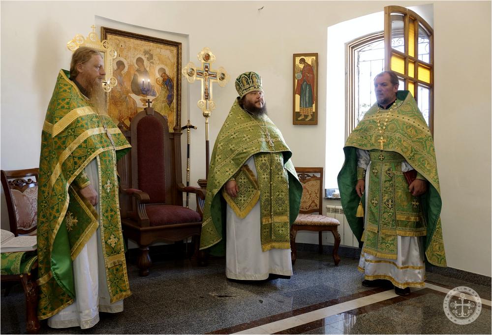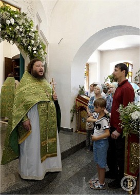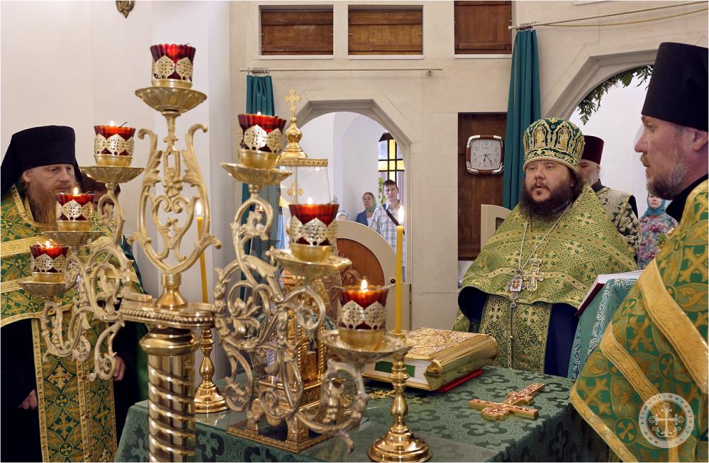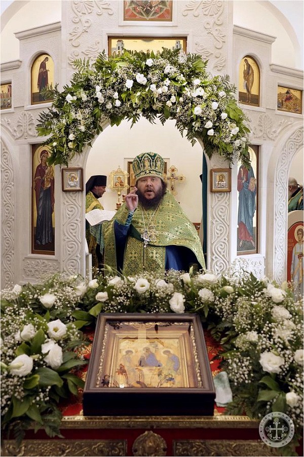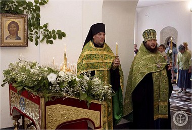 Празднично украшенный Троицкий храм в престольный праздник был полон богомольцев. Христианская Пятидесятница – Троица – заключает в себе двойное торжество – прославление Пресвятой Троицы и Пресвятаго Духа, видимым образом сошедшего на апостолов и запечатлевшего тем новый вечный завет Бога с людьми. Также воедино собранный ныне Духом Святым народ Божий молитвенно прославил Святую Троицу под сводами соборного храма Инкерманского монастыря.