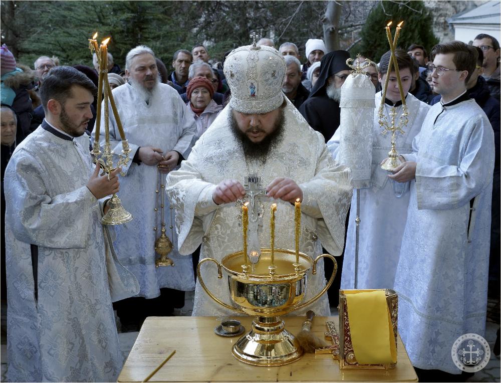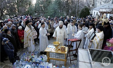 В навечерие Богоявления, Крещенский сочельник, по окончании богослужения в пещерном Климентовском храме были совершены крестный ход на иордань и чин великого освящения воды на Святом озере.