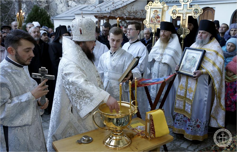 В день Святого Богоявления праздничную Литургию в Троицком храме обители возглавил наместник Свято-Климентовского монастыря епископ Бахчисарайский Каллиник.