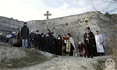 По окончании богослужения Преосвященным владыкой Каллиником на монастырском дворе у древних пещер был совершен чин освящения великой агиасмы в сослужении насельников Инкерманского монастыря в священном сане.
