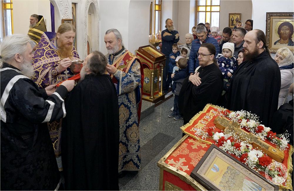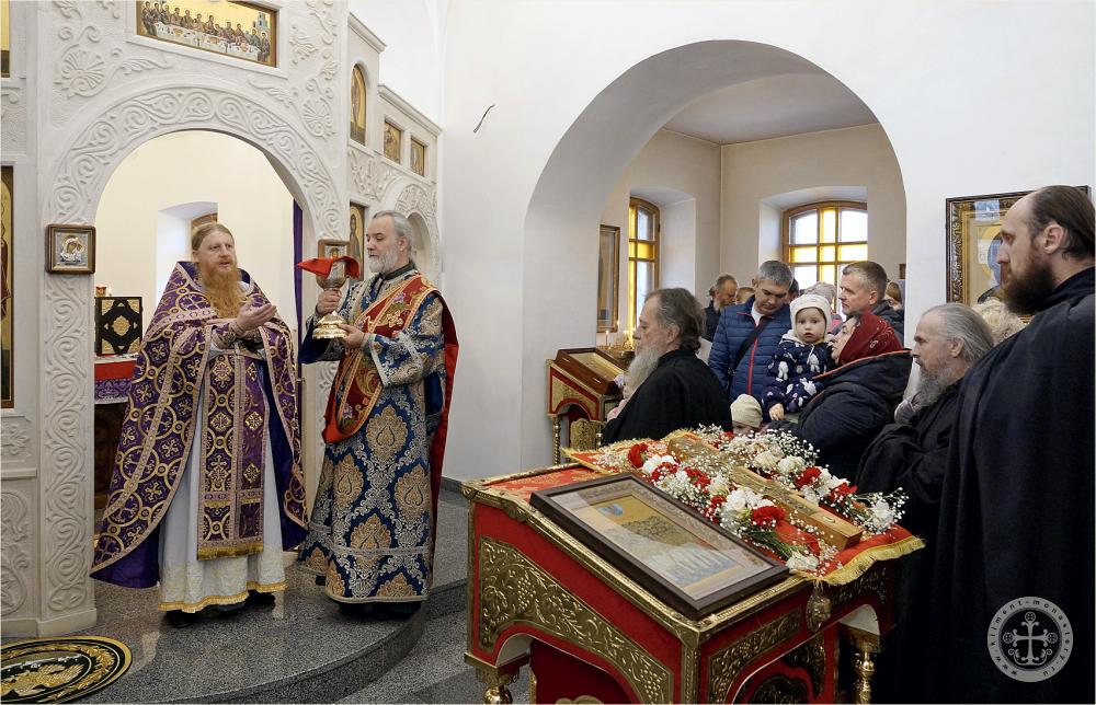 Храм был полон богомольцев, с верою и упованием пришедших поклониться Честному и Животворящему Древу Креста Спасителя нашего Иисуса Христа.