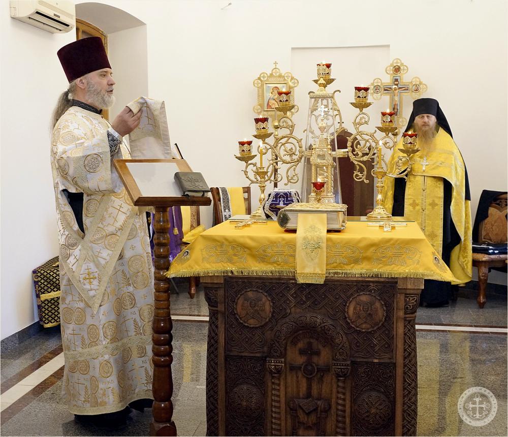 Богослужение возглавил благочинный монастыря иеромонах Авель (Василенко) в сослужении протодиакона Георгия Горбули.