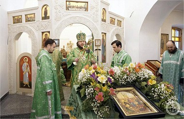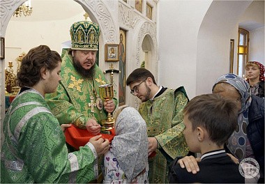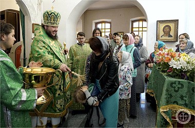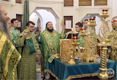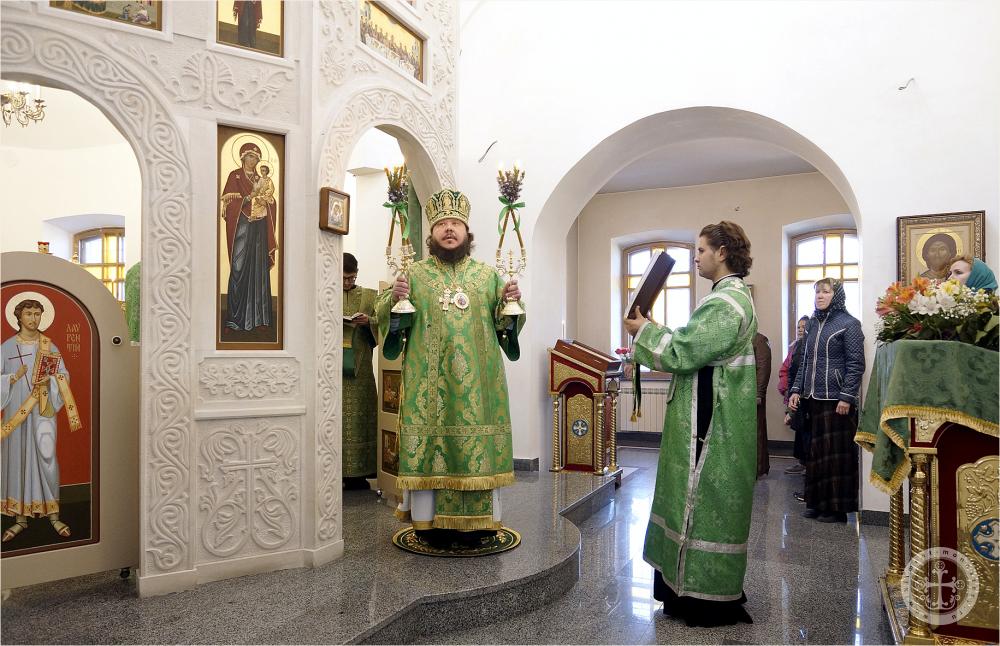 Его Преосвященству сослужили благочинный монастыря иеромонах Авель (Василенко) и насельники обители в священном сане – иеромонахи Иларион (Чистяков) и Андрей (Данилов).