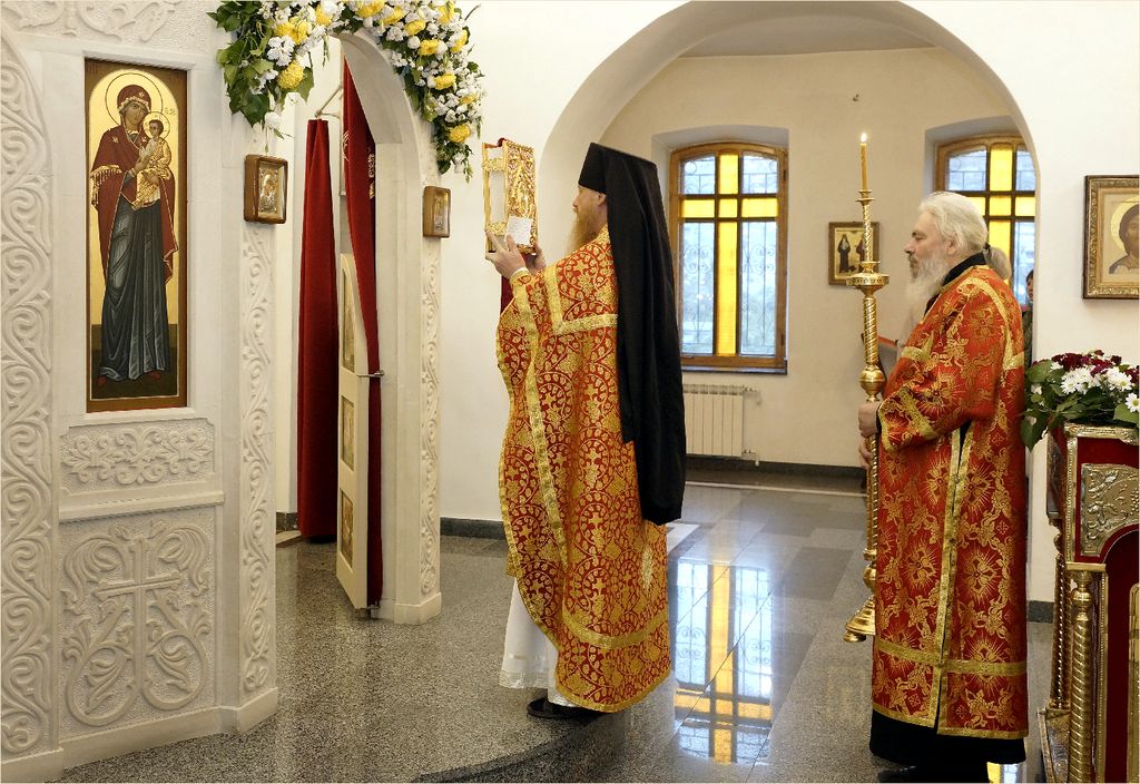 27 сентября, в пятницу 15-й седмицы по Пятидесятнице, когда Церковь совершает празднование Воздвижению Честного и Животворящего Креста Господня, Всенощное бдение и Божественную литургию в Троицком храме Свято-Климентовского монастыря при большом стечении прихожан и паломников возглавил благочинный Инкерманской обители иеромонах Авель (Василенко).