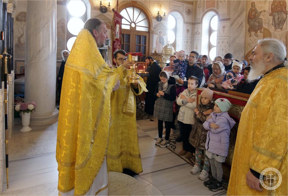 По окончании Литургии владыка Каллиник произнёс проповедь, и на целовании креста окропил всех собравшихся святой водой.