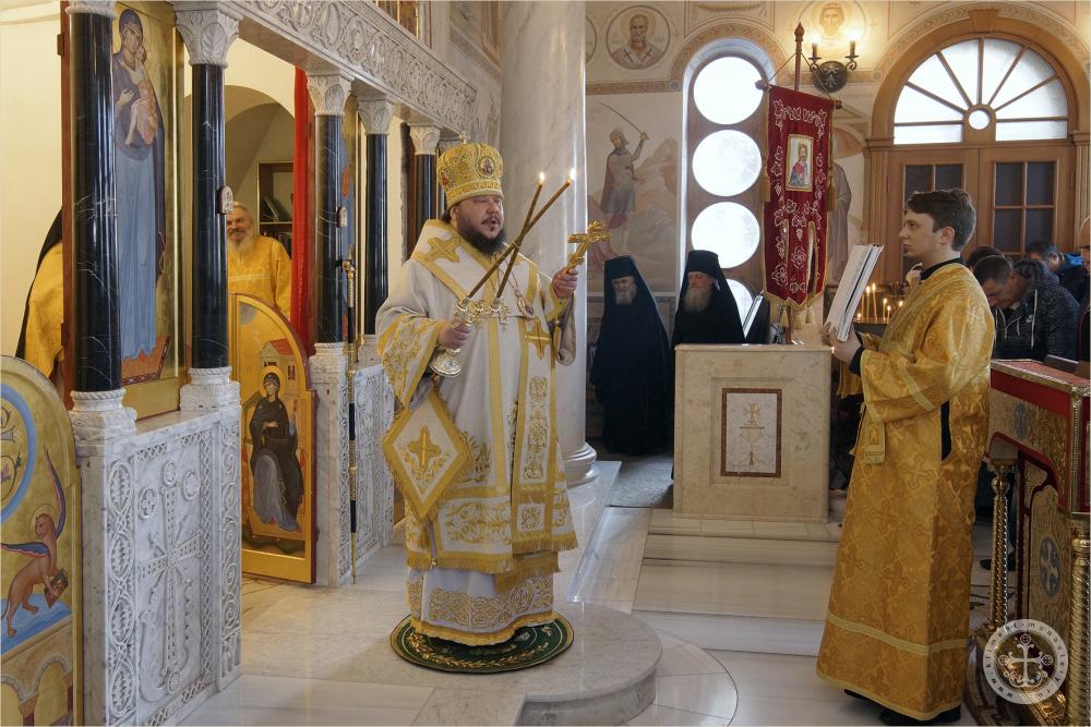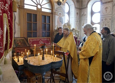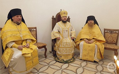 Его Преосвященству сослужили благочинный Инкерманского монастыря иеромонах Авель (Василенко) и иеромонах Иларион (Чистяков).