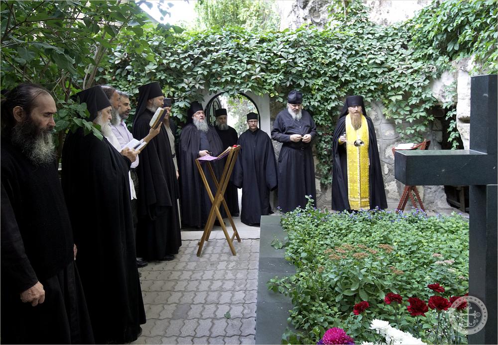 По отпусте Божественной литургии всебратственную панихиду у могил архимандрита Августина и иеромонаха Агапита в монастырском саду отслужил благочинный монастыря иеромонах Авель (Василенко).